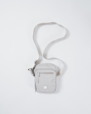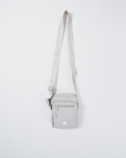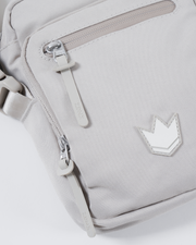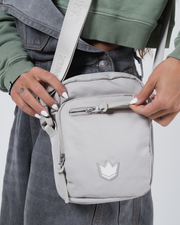 The Kingz Side Bag features a sleek portrait-profile structure with a multi-compartment design, a divided main pocket, a custom shoulder strap, and unique zipper pullers.